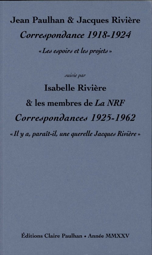 suivie par Isabelle Rivière & les membres de la NRF, Correspondances 1925-1962.