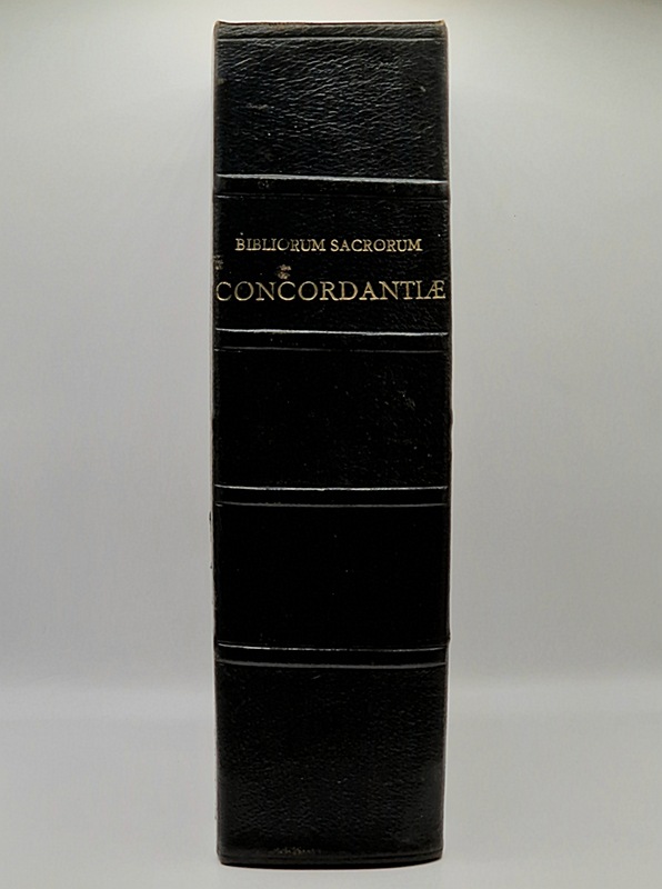 Bar-le-Duc/Paris, Ex Typis Coelestinorum/Bloud et Barral, 1876 ; fort in-4° relié demi-chagrin noir, texte sur trois colonnes, XXIV-1484 pp. Établie sur le texte de la Vulgate sixto-clémentine, cette concordance demeure l'ouvrage de référence en la matière