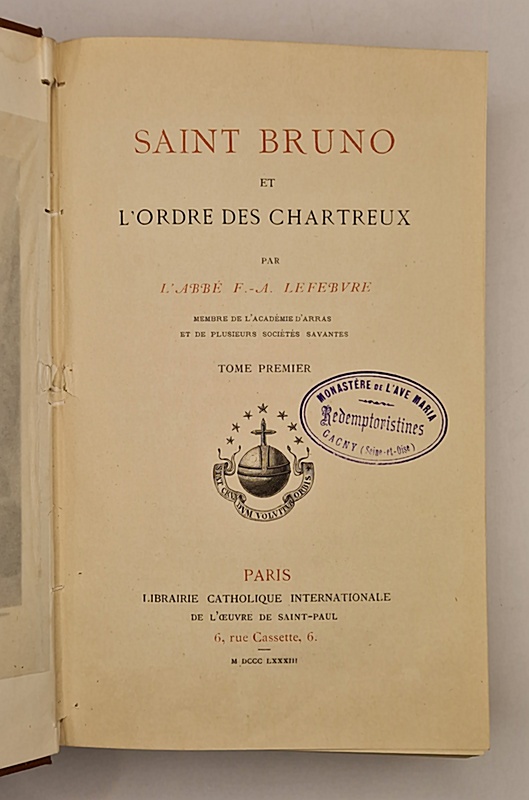 Paris, Librairie catholique internationale de l'oeuvre de Saint-Paul, 1883 ; 2 vol. in-8° reliés similicuir, dos plats, deux gravures en frontispices, tampons, XL-601 et 682 pp. Complet.