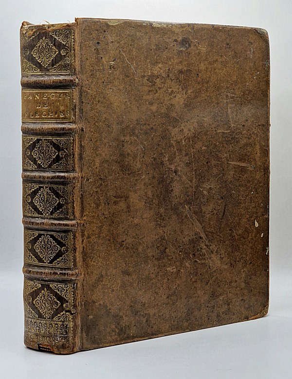 Paris, Jean Anisson, 1696 [édition originale] ; in-4° relié plein veau de l'époque (coins et champs usés par endroits, quelques griffures et menus défauts sur le second plat), dos à nerfs richement orné (coiffe supérieure absente, coiffe inférieure ébréchée et petit accroc au dernier caisson), tranches mouchetées de rouge, portrait-frontispice d'Esprit Fléchier absent, grande vignette de titre gravée en taille-douce, grands bandeaux gravés (dont un historié), culs-de-lampe et lettrines, (30)-440-239 pp. Grande fraîcheur intérieure. L'ouvrage contient entre autres les panégyriques d'Ignace de Loyola, sainte Thérèse, saint François Xavier, saint Philippe Néri, saint François de Sales, plusieurs sermons pour l'ouverture des États du Languedoc, etc., et une suite de sermons prêchés en des occasions particulières.
