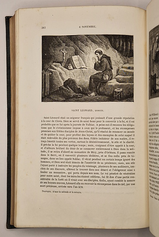 Tours, Alfred Mame et Fils, 1867 ; in-8° relié plein chagrin vert, dos à nerfs richement orné, tranches dorées, 384 gravures représentant des scènes hagiographiques, XXIV-400 pp.