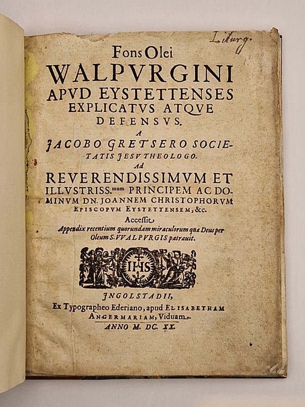 Fons Olei Walpurgini [Walburge] apud Eystettenses explicatus atque defensus a Jacobo Gretsero Societatis Jesu Theologo.
