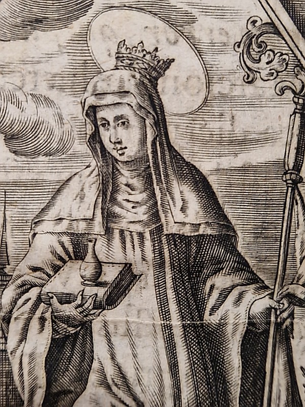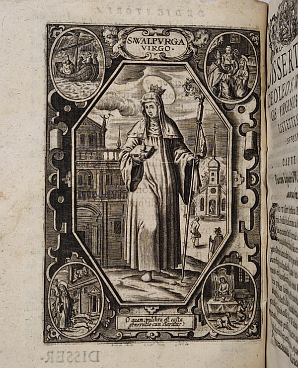 Ingolstadt, Elisabeth Angermaria, 1620 ; petit in-8° relié demi-basane fauve (reliure moderne, dos muet), bandeau, culs-de-lampes et lettrines gravés, une belle planche gravée hors texte représentant sainte Walburge, (5)-55-(1) pp. Rare. Jacob Gretser (1562-1625), auteur de la Contre-Réforme, a composé cet ouvrage traitant du miracle de l'huile sainte suintant du tombeau de sainte Walburge, miracle présent dans la dévotion populaire dès le IXe siècle.