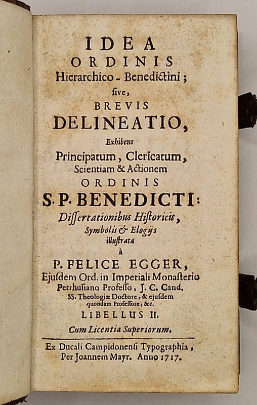 Sive, Brevis Delineatio, Exhibens Principatum, Clericatum, Scientiam & Actionem Ordinis S. P. Benedicti : Dissertationibus Historicis, Symbolis & Elogÿs illustrata à P. Felice Egger [...]. Libellus II.