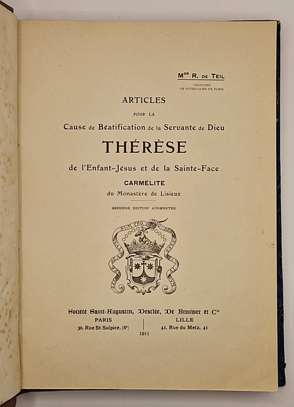 Articles pour la cause de béatification de la servante de Dieu, Thérèse de l'Enfant-Jésus et de la Sainte-Face, carmélite du monastère de Lisieux.