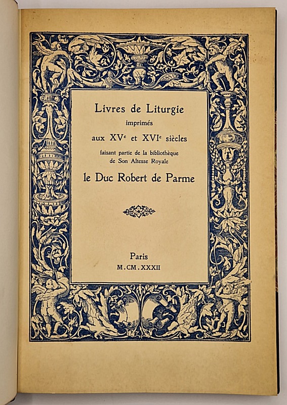 Livres de liturgie imprimés aux XVe et XVIe siècles faisant partie de la bibliothèque de son altesse royale le duc Robert de Parme.