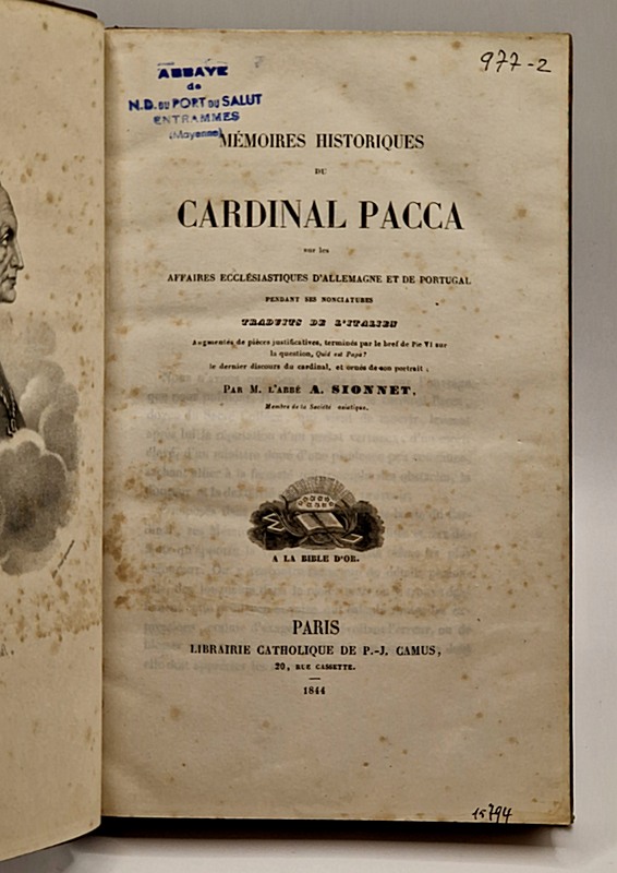 Mémoires historiques sur les affaires ecclésiastique d'Allemagne et de Portugal pendant ses nonciatures.