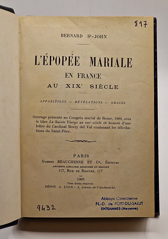Paris, Beauchesne, 1905 ; in-8° relié demi-basane bleue, dos à nerf orné, ex-dono manuscrit, tampons, planches hors texte, XV-475 pp.