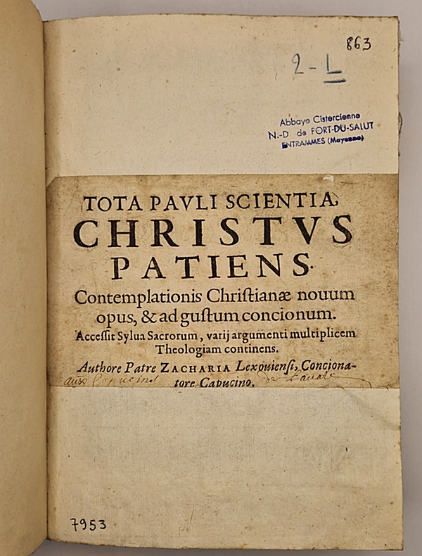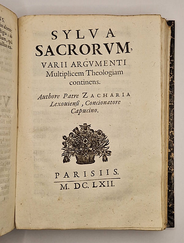 Paris, Apud viduam D. Thierry, 1662 ; petit in-4° relié demi-toile noire (reliure postérieure), page de titre en partie manquante (titre, sous-titre et auteur conservés, proprement collés sur un papier moderne, où l'on trouve quelques inscriptions manuscrites et un tampon), mouillure claire dans les marges supérieures de nombreux feuillets, quelques pages en partie restaurées, les trois derniers feuillets sont endommagés et en partie détachés (mais lisibles), (24)-754-(19) pp. Complet pour le texte.