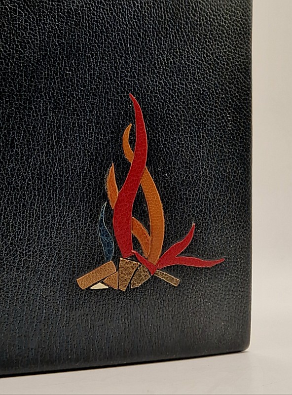 Bruges, DDB, 1943 ; in-8° relié plein chagrin (couverture d'origine conservée), dos lisse (insolé), petit composition mosaïquée représentant une flamme sur le premier plat, 218 pp.