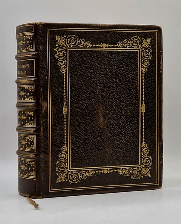 Paris, Gruel et Engelmann, 1858 ; in-12 relié plein maroquin brun (frotté par endroits, notamment sur les nerfs et les coins), dos à nerfs richement orné, large encadrement comportant deux doubles filets dorés et un décor floral sur chaque plat, titre-frontispice, roulette intérieure, gardes de moire pistache, quelques rousseurs éparses, larges cadre d'inspiration médiévale à chaque page, deux gravures hors texte, 703 pp.