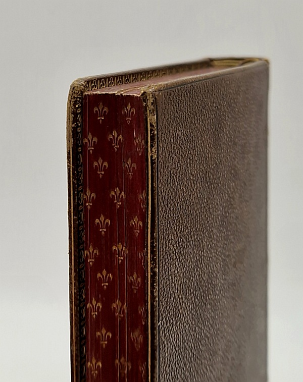 Paris, Morizot, s. d. [fin du XIXe siècle] ; in-16 relié plein chagrin noisette, dos à nerfs, tranches rouges à semis de lys dorés, frontispice et titre-frontispice chromolithographié, trois planches gravées hors texte, XXVII-284 pp.