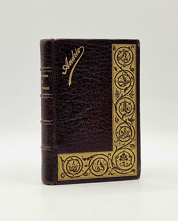 Limoges, Marc Barbou, 1892 ; in-16 relié plein maroquin lie-de-vin, dos à nerfs, encadrement floral doré en équerre et prénom « Andrée » en lettres or sur le premier plat, tranches dorées, roulette intérieure, une planche hors texte, 247 pp.
