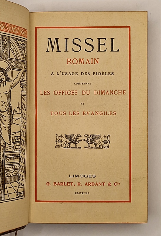 Limoges, G. Barlet et R. Ardant, 1910 ; in-12 relié plein veau glacé, dos lisse (coiffes légèrement frottées), bel et fin décor estampé et encadrement de filets dorés sur chaque plat, tranches dorées, roulette intérieure, deux planches gravées rouge et noir (dont frontispice), 239 pp.