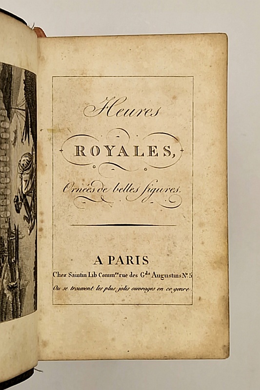 Paris, Saintin, s. d. [c. 1810-1830] ; in-16 relié plein maroquin vert obscur à grain long (deux coins usés, frotté par endroits), dos lisse richement orné, encadrement floral doré sur chaque plat, tranches dorées, manque de papier à l'angle inférieur des pp. 11-12, 13-14 et 27-28 (avec atteinte du texte), pages brunies, gravures hors texte, XXXII-270 pp.