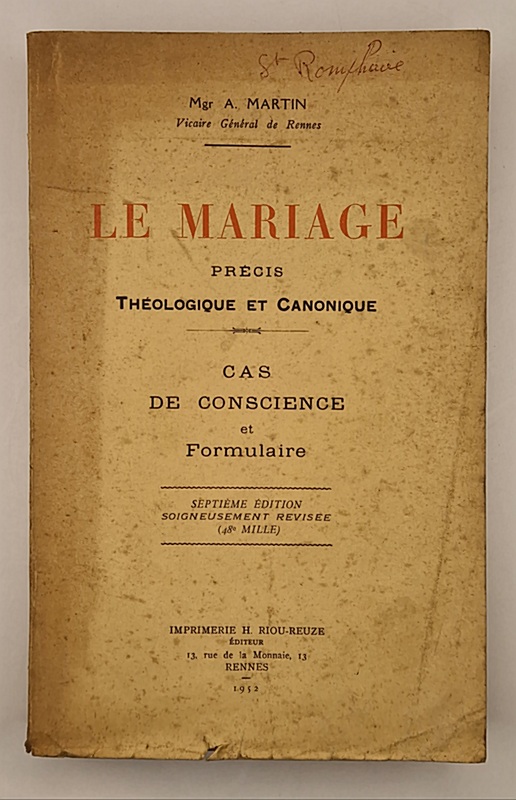 Rennes, Riou-Reuze, 1952 ; in-8° broché, couverture salie, rousseurs intérieures, 471 pp.