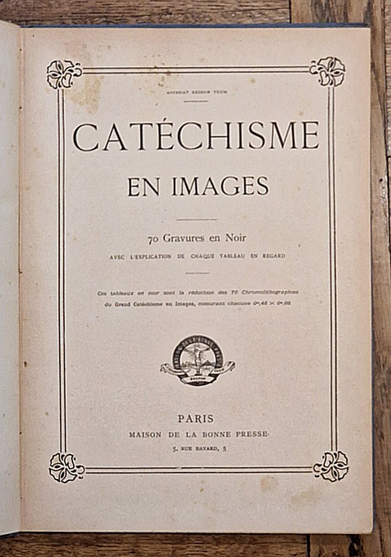 70 gravures en noir avec l'explication de chaque tableau en regard. Ces tableaux en noir sont la réduction des 70 chromolithographies du Grand catéchisme en images.