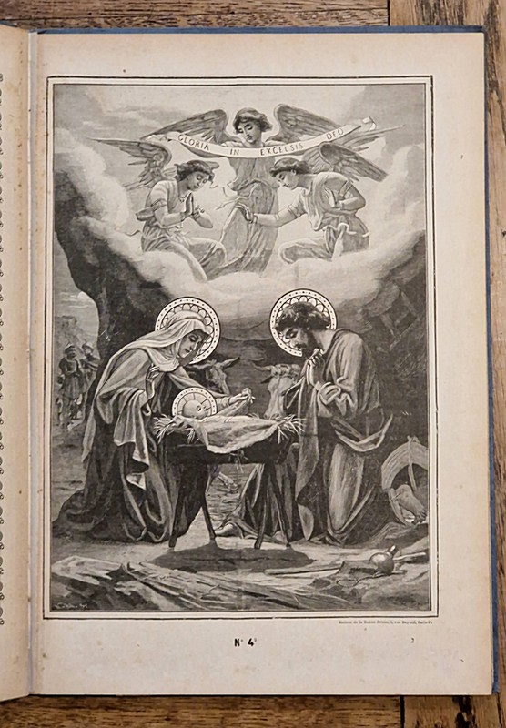 Paris, La Bonne Presse, 1908 ; in-4° relié pleine toile illustrée avec rehauts dorés, quelques cahiers fragilisés, nombreuses et grandes illustrations, 66 ff.