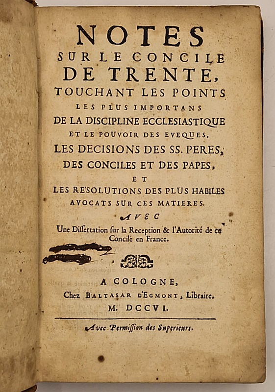 Touchant les points les plus importans de la discipline ecclesiastique et les pouvoirs des Eveques, les Decisions des SS. Peres, des Conciles et des Papes, et les résolutions des plus habiles avocats sur ces matieres. Avec une Dissertation sur la Reception & l'Autorité de ce Concile en France.