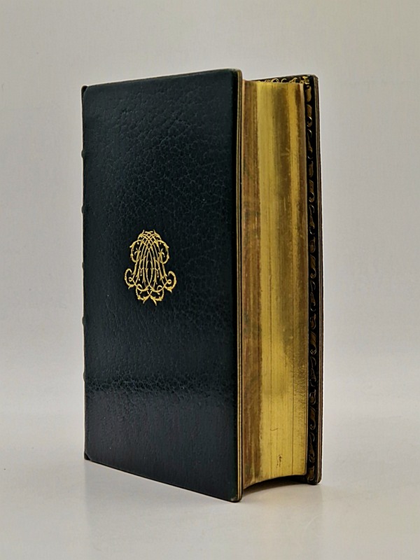 Paris, Gaume et Cie, 1865 ; in-16 relié plein maroquin vert bouteille, dos à nerfs signé « Gruel » en pied, tranches dorées et marbrées, monogramme doré sur le premier plat, gardes de moire vert foncé, large roulette intérieure, marque de l'imprimeur, quatre belles gravures (dont frontispice), r-XIX-196-517-137 pp.