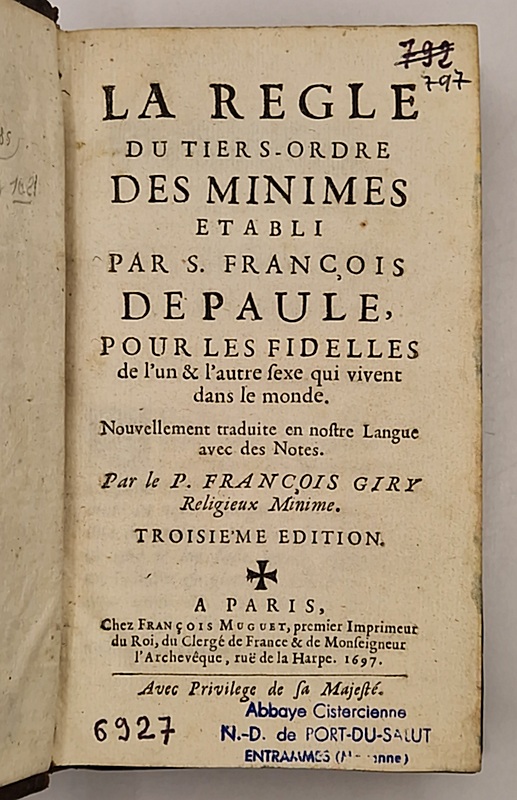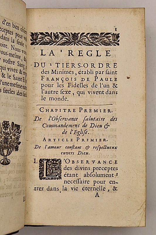 La Regle du Tiers-Ordre des Minimes etabli par S. François de Paule pour les fidelles de l'un & l'autre sexe qui vivent dansn le monde.