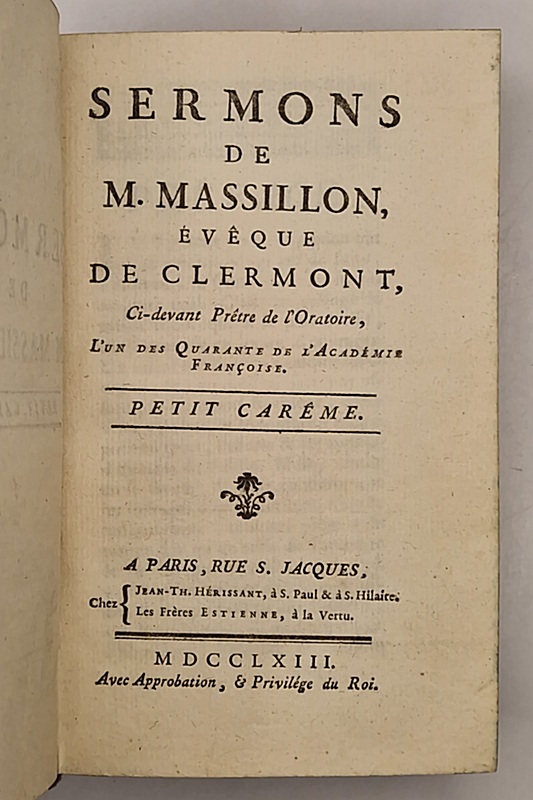 Paris, Jean-Thomas Hérissant/Frères Estienne, 1763 ; in-12 relié plein veau de l'époque (un coin émoussé), dos lisse richement orné (coiffe supérieure ébréchée), tranches marbrées, XXIV-315 pp. Bel exemplaire de très bonne fraîcheur intérieure.