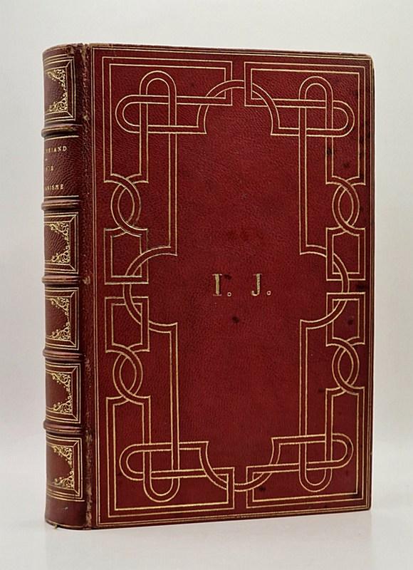 Paris, Garnier Frères, s. d. ; in-8° relié plein chagrin rouge (légèrement frotté par endroits), dos à nerfs orné, plats ornés d'entrelacs et d'un double filet d'or, large dentelle intérieure dorée, cinq gravures en taille-douce de Ferdinand Delannoy, Jean-Jacques Outhwaite et Léopold Massard (dont frontispice), 749 pp.