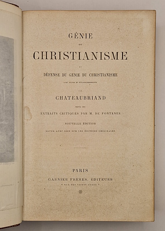 Et Défense du Génie du christianisme. Avec notes et éclaircissements. Suivis des Extraits critiques par M. de Fontanes. Nouvelle édition revue avec soin sur les éditions originales.