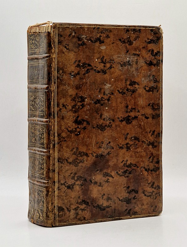 Coloniae [Cologne], Sumptibus Tornaesiorum [de Tournes], s. d. [1750-1785] ; in-8° relié plein veau de l'époque (deux coins émoussés), dos à nerfs richement orné (coiffe supérieure et une partie du caisson de tête absentes), tranches rouges, marque de l'imprimeur en page de titre, ex-libris anciens (dont un daté de 1787), quelques salissures en gardes, XXII-632-256 pp.