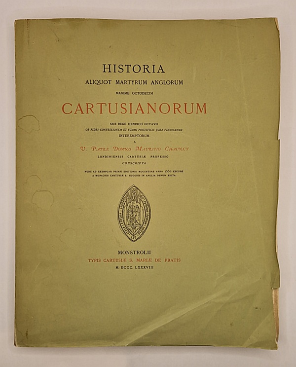Sub rege Henrico Octavo ob Fidei Confessionem et Summi Pontificis jura vindicanda interemptorum a V. Patre Domno Mauritio Chaucy. Nunc as exemplar primae editionis Moguntinae anno 1550 excusae a Monachis Cartusae S. Hugonis in Anglia denuo edita.