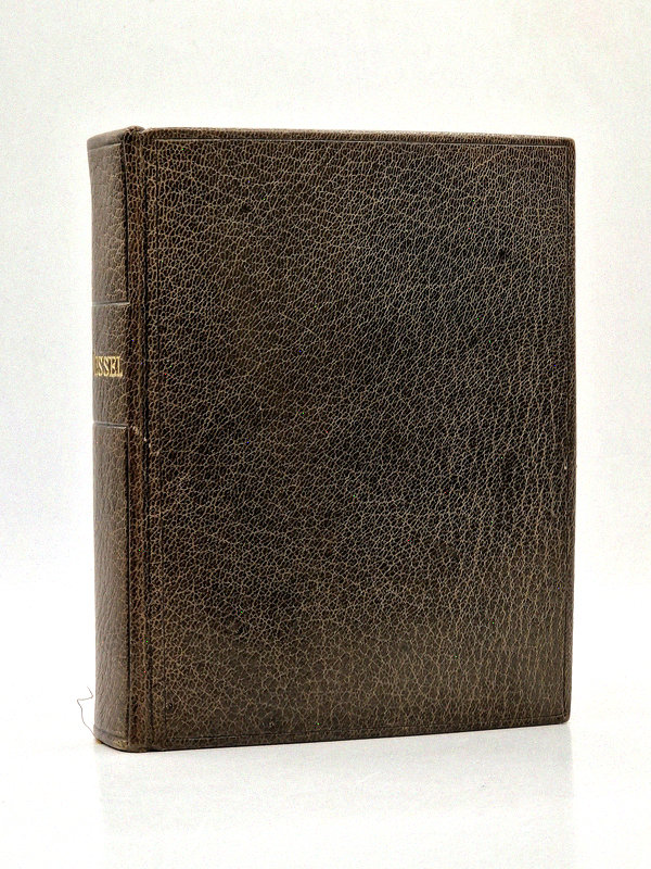 Tours, Alfred Mame et Fils, 1907 ; in-12 relié plein maroquin brun clair, dos lisse, tranches dorées, large roulette intérieure dorée, gardes de moire beige, cinq planches gravées hors texte (dont frontispice) – nuances de gris au recto et sépia au verso –, bel encadrement historié en équerre à chaque page, texte noir et rouge, (6)-507 pp.