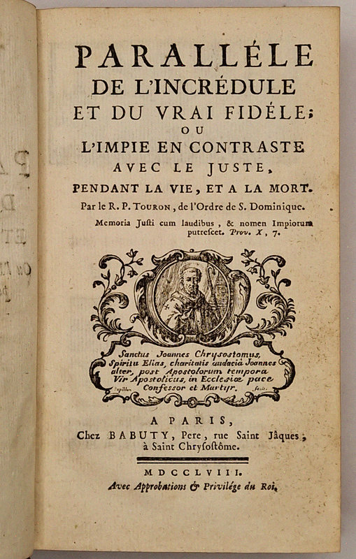 Paralléle de l'incrédule et du vrai fidéle ou l'Impie en constraste avec le juste, pendant la vie, et a la mort.