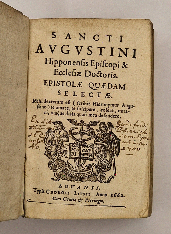 Louvain, Georgius Lipsius, 1662 ; in-12 plein vélin de l'époque, dos plat portant titre et auteur manuscrits, belle vignette gravée au titre avec la devise de l'éditeur, ex-libris manuscrits de 1775 en page de garde et de 1700 en page de titre, (24)-623 pp.
