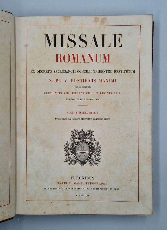 Ex decreto sacrosancti concilii Tridentini restitutum S. Pii V Pontificis Maximi jussu editum.