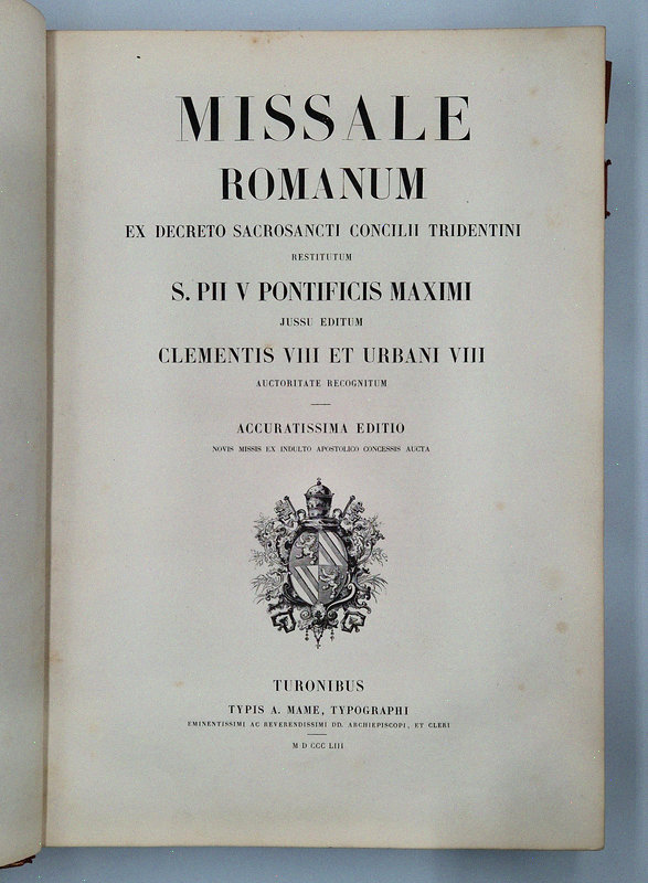 Ex decreto sacrosancti concilii Tridentini restitutum S. Pii V Pontificis Maximi jussu editum.