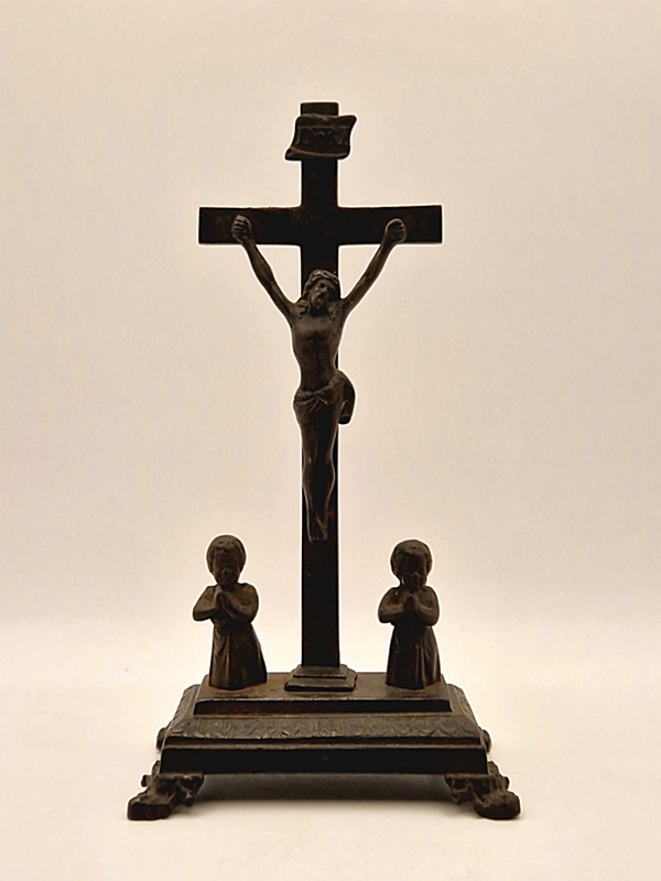 Petit calvaire métallique, début du XXe siècle. Hauteur : 17,50 cm ; largeur : 10 cm (socle).