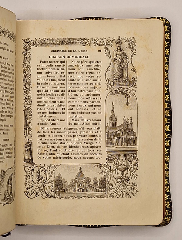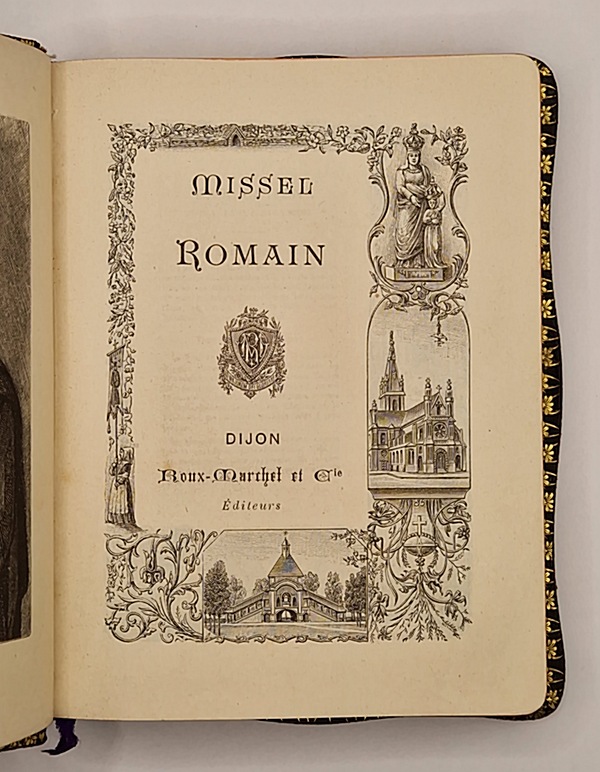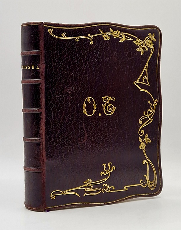 Dijon, Roux-Marchet, 1901 ; in-12 relié plein maroquin lie-de-vin, dos à nerfs (champs, nerfs et second plat frottés), plats fetonnés, encadrement floral doré sur le premier plat avec initiales dorées au centre, tranches dorées, roulette dorée et gardes de moire beige, frontispice, large encadrement sur chaque page, 512 pp.
