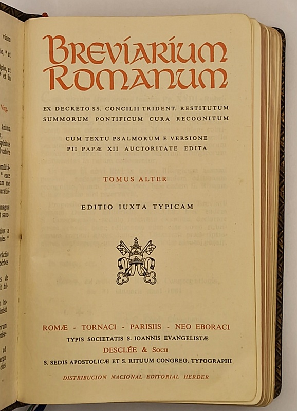 Ex decreto SS. concilii Trident. restitutum summorum pontificum cura recognitum, cum textu Psalmorum e versione Pii pape XII auctoritate edita. Editio juxta typicam.
