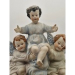 Bénitier domestique. Enfant Jésus soutenu par deux angelots.