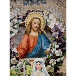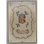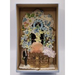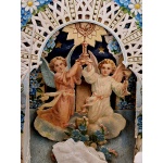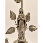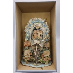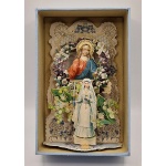 Souvenir de Lourdes représentant Bernadette Soubirous agenouillée devant l'apparition de la Vierge.