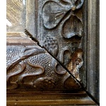 Agneau mystique allongé dans un parterre de fleurs (bénitier).